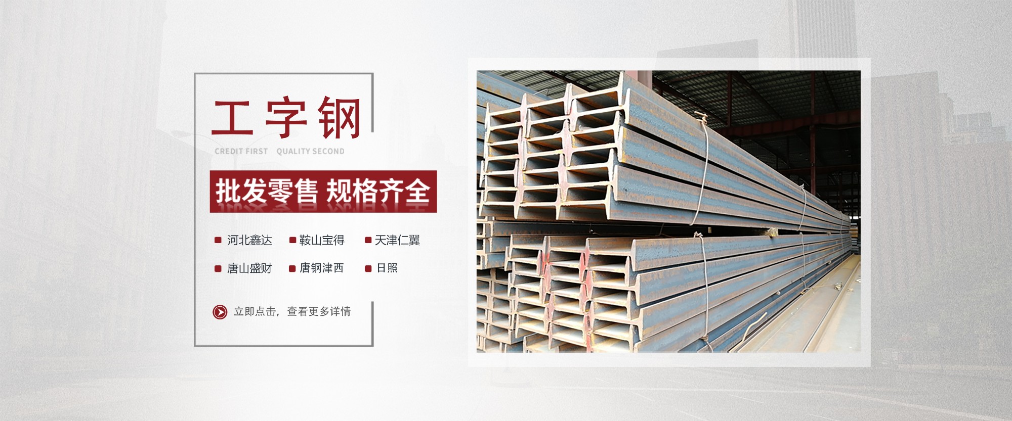 佛山市銀洲貿易有限公司于1997年創立,位于全國最大的鋼材批發物流市場--廣東樂從,經過20多年的發展,銀洲現已發展成華南地區大規模的型材銷售商,設有大型商場式門市及室內倉庫面積達2萬平方米,是一家從事鋼鐵貿易、加工、配送的大型民營企業。銀洲主要經營工字鋼、槽鋼、角鋼、H型鋼等多種鋼鐵產品現貨。